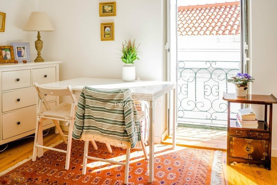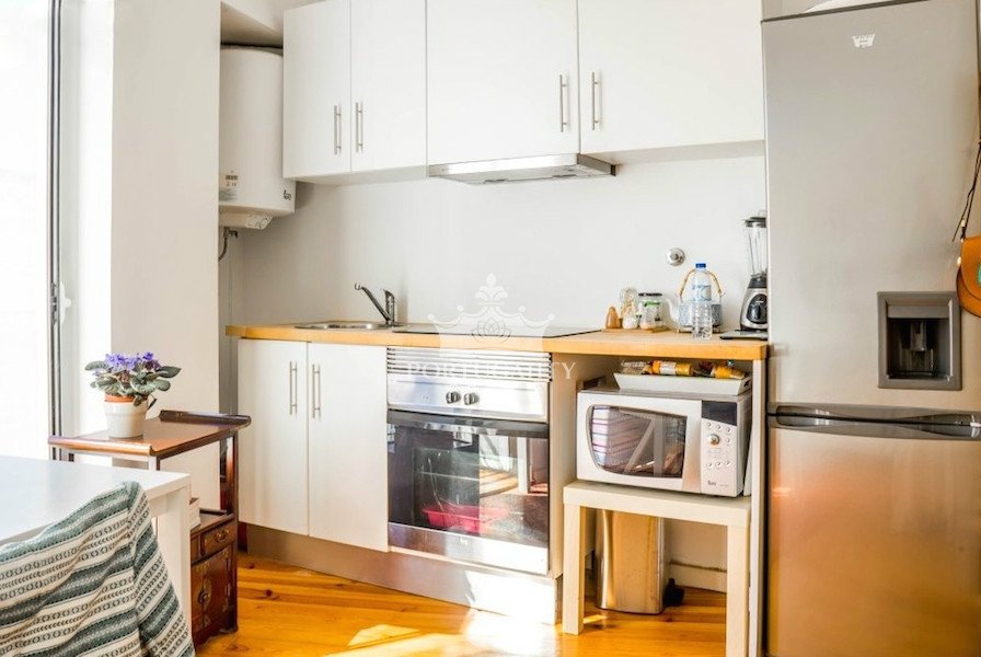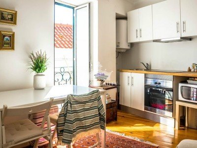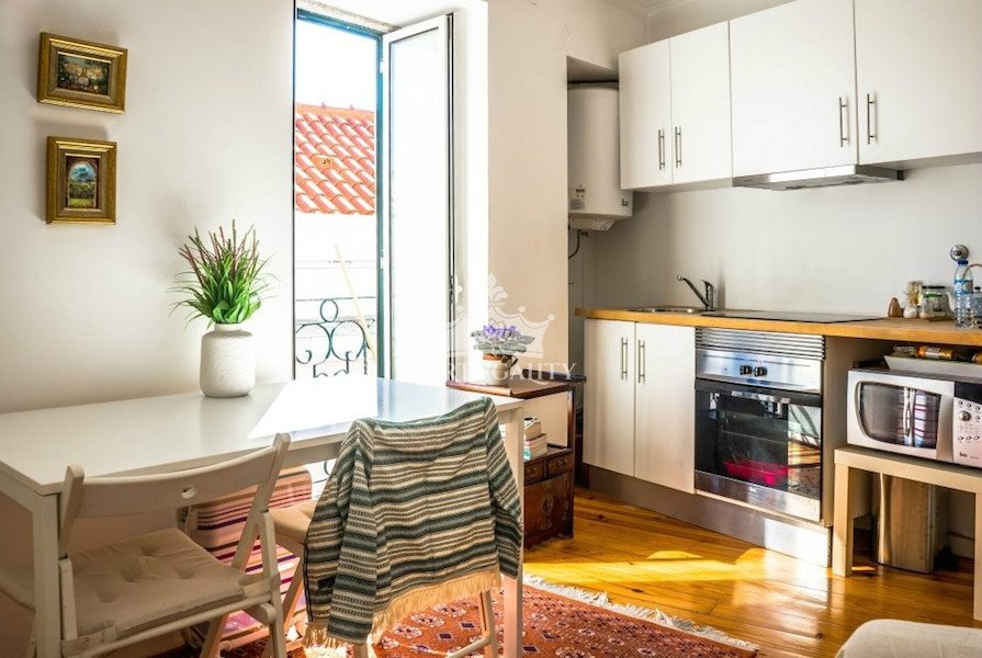 The apartment is renovated. It consists of a living room and a kitten in open concept, a bedroom and WC. The balcony offers a beautiful view over Lisbon.