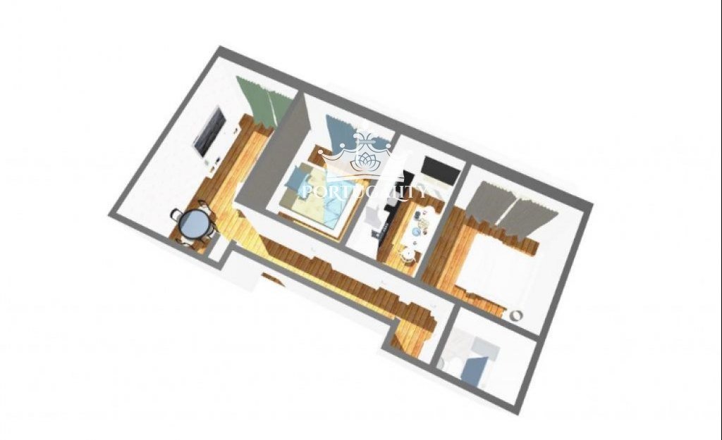 Apartment T2, completely renovated with 71m2 and balconies, very well located in the next to the University campus, housed in a building recovered with 2 elevators and communal roof terrace with RIVER VIEW, equipped: