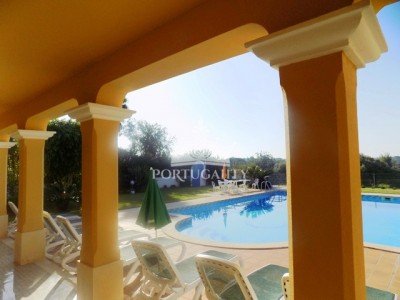A beautiful and very cozy villa in a quiet area in Olhos de Água, Albufeira. In the green area, well cared with 2000 m2 is located a beautiful house with exotic plants and trees, a large pool and well thought out areas to rest. 1.5 km to the Falesia beach and the Olhos de Agua beach, 4 km to the center of Albufeira. In the houses architecture are used three domes, which brings its own flavor to the interior of the house and the exterior facade. Quality construction, wood floors and staircase, double glazing, excellent insulation. In the graund floor: a spacious room divided into two zones: the dining room and a sitting area near the fireplace. The comfort is further increased due to different types of ceiling lighting and the dome. 2 spacious bedrooms with fitted wardrobes, large windows and exit to the garden. 2 splendid suites with large closets and bathrooms with Jacuzzi. It also has 2 bathrooms, spacious kitchen, pantry, laundry, and a garage with space for storage. On the 1st floor: light games room and spacious or office with access to a large terrace where you can arrange a place to sunbathe or just enjoy the silence and enjoy the birdsong watching the sun rise or set, and enjoy the green landscape. Near the house there is a large pool with an excellent leisure area very well organized to rest or a holiday: a kitchen fully equipped to part, bathroom, barbecue, shower, pool and billiards and tennis tables. The house has air conditioning, fireplace, sound system, security alarm, auto watering, outdoor lighting, solar panels, as well as your own hole and a water tank, which can significantly save on water consumption and electricity. The house is fully equipped and furnished. A great opportunity to purchase an ideal place to stay and rest for family and friends, or in terms of investment for rental! (minimum annual income of 35,000 euros, if we consider only the summer season).
