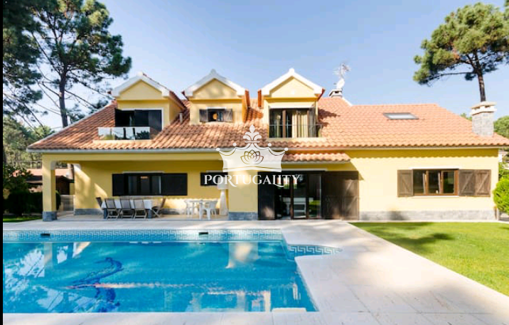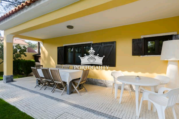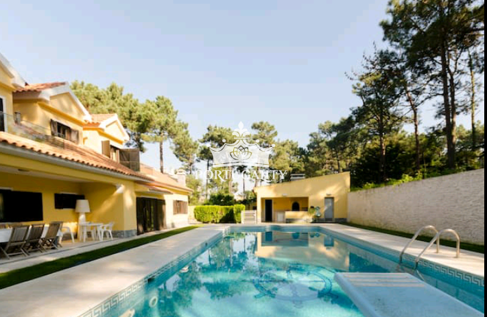Wonderful bright villa with a private pool, garden, barbecue and gym. Being located 30 kms from Lisbon, it is only 10 minutes walking distance from beach and 3 minutes from the Golf-Resort.