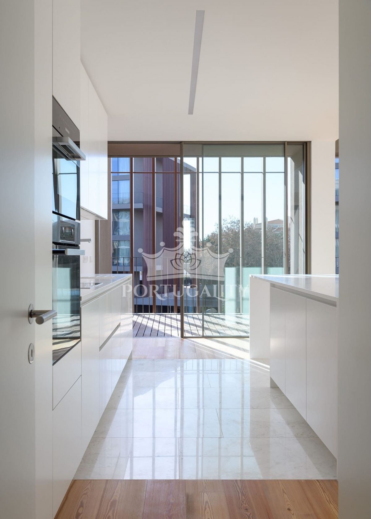 Апартаменты T2 имеет общую площадь 121 м2 в дополнение к просторной террасе, выходящей на южную сторону. Состоят из большой гостиной с выходом на террасу, кухни в американском стиле, двух спальней с ванной и гардеробной, а также гостевого туалета. Есть парковка на две машины с зарядными устройствами для электромобилей и кладовая.